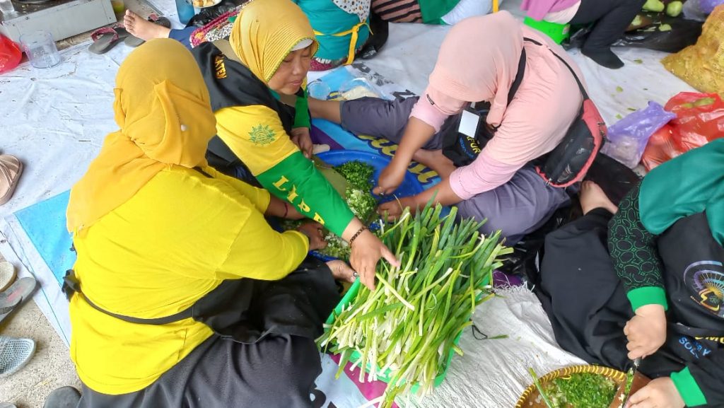 Relawan bagian sayur-mayur sedang memotong sayuran untuk keperluan Dapur Umum Muktamar ke-48 (DUMMA 48)