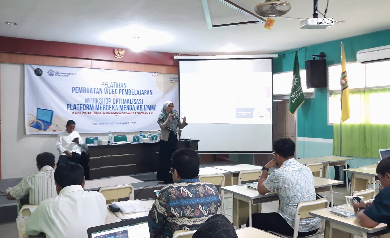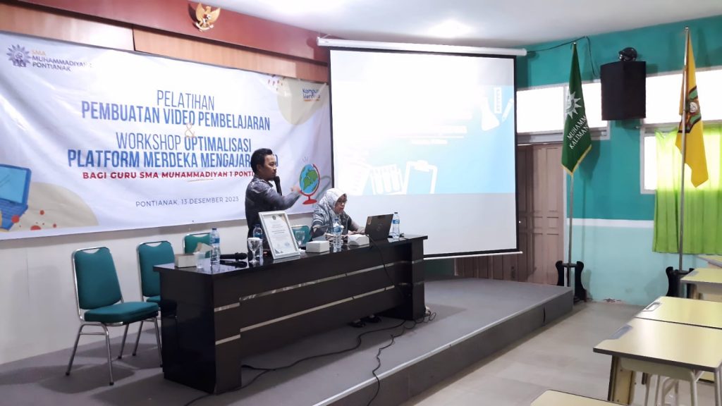 MYKALBAR.COM – Sebanyak 50 guru dari SMA Muhammadiyah 1 Pontianak mengikuti pelatihan pembuatan video pembelajaran yang diselenggarakan oleh Universitas Muhammadiyah Pontianak (UMP) pada hari Rabu, 13 Desember 2023. Menurut Ketua Tim Hibah Pengabdian Dosen Syarifah Putri Agustini Alkadri, S.T., M.Kom., pelatihan ini merupakan bagian dari program pengabdian dosen UMP yang bertujuan untuk meningkatkan kualitas pembelajaran di sekolah.