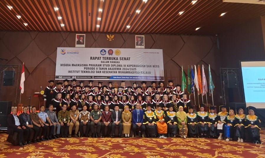 MYKALBAR.COM – Institut Teknologi dan Kesehatan (ITEKES) Muhammadiyah Kalimantan Barat resmi mewisuda 141 lulusan pada Wisuda Periode II Tahun Akademik 2024/2025 yang berlangsung di Aula Qubu Resort, Jalan Arteri Supadio, Kubu Raya, Selasa 25 November 2025.