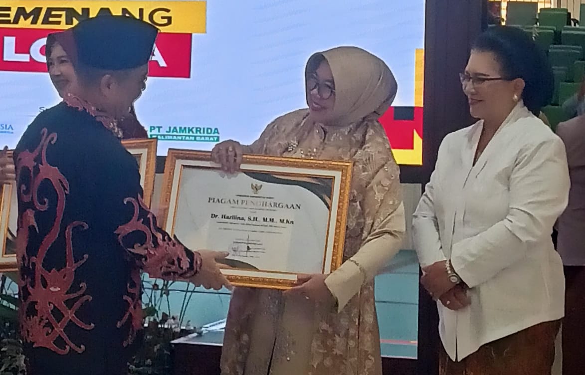 Dr. Hazilina menerima penghargaan bergengsi dari Gubernur Kalimantan Barat, Drs. H. Ria Norsan, M.M., M.H., atas dedikasinya yang luar biasa di bidang Perempuan Inspiratif Pengarusutamaan Gender.
