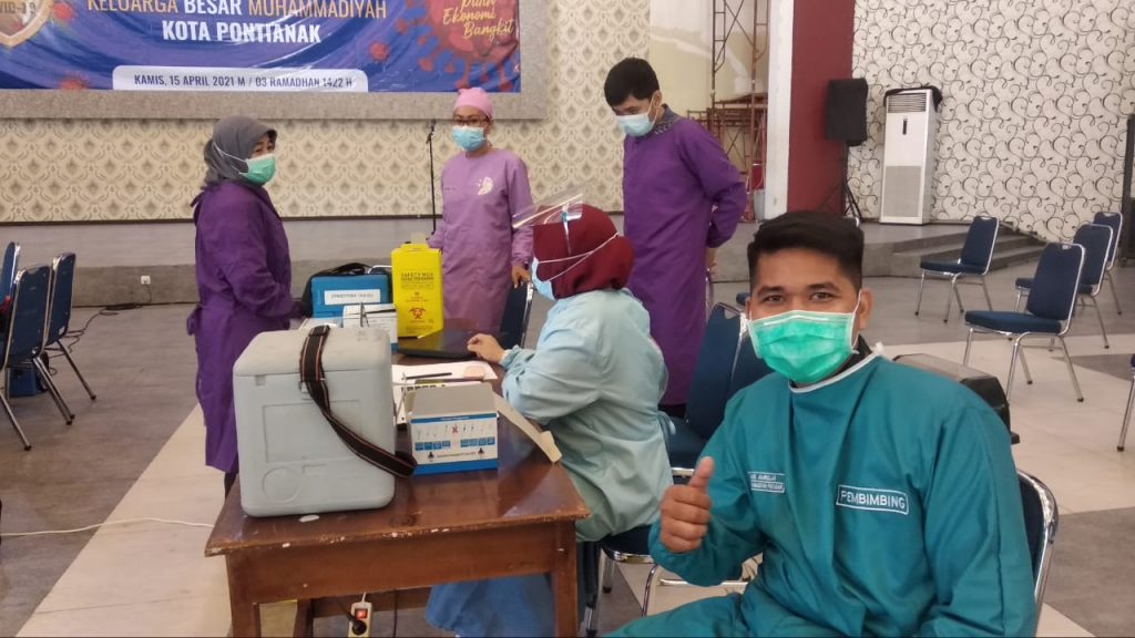 Vaksinasi diselenggarakan di Auditorium Universitas Muhammadiyah (UM) Pontianak, Kamis 15 April 2021 pagi. Ketua Muhammadiyah Covid-19 Command Center (MCCC) Kalbar, Dr. Malik Saepudin, S.K.M., M.Kes menyampaikan bahwa semula vaksinasi ini ditargetkan kepada 160 orang.