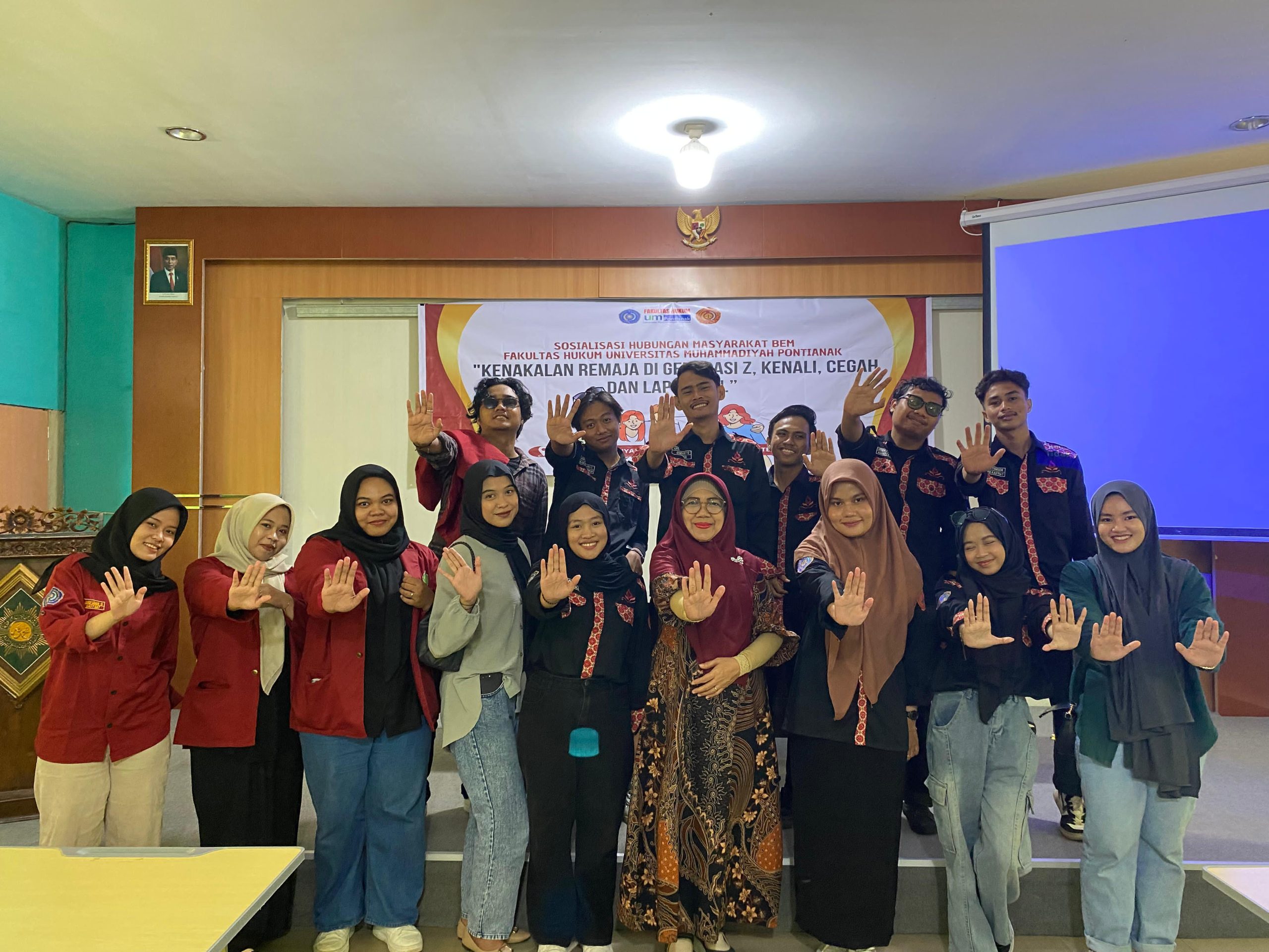 MYKALBAR.COM – Bidang Humas BEM Fakultas Hukum Universitas Muhammadiyah (UM) Pontianak mengadakan sosialisasi kepada siswa-siswi SMA Muhammadiyah 1 Pontianak mengenai topik “Kenakalan Remaja Generasi Z: Kenali, Cegah, dan Laporkan”.