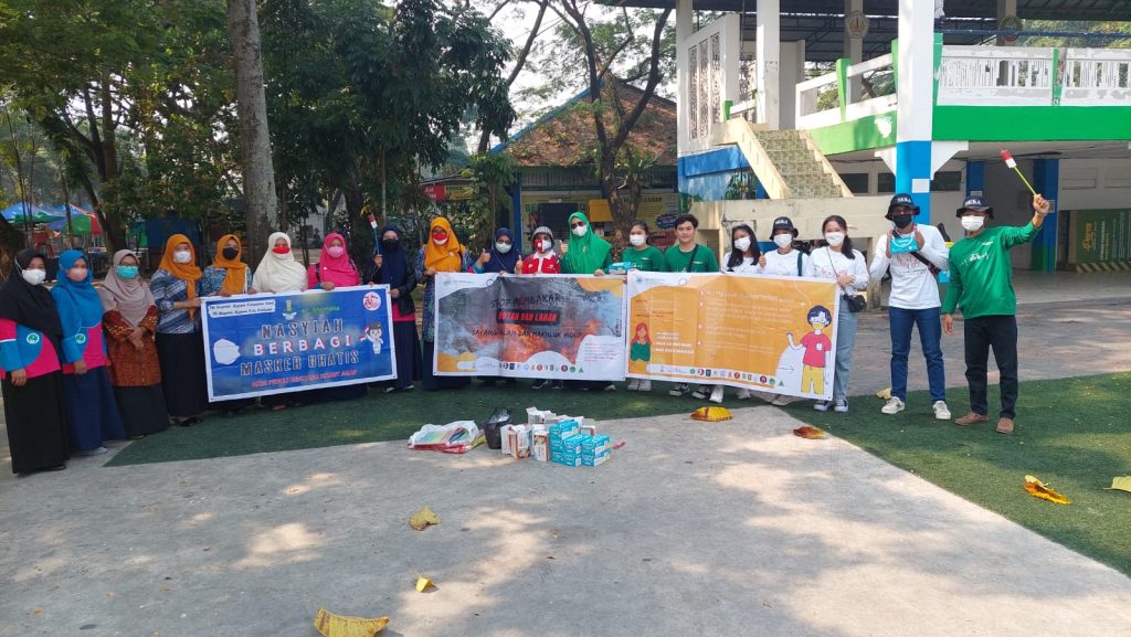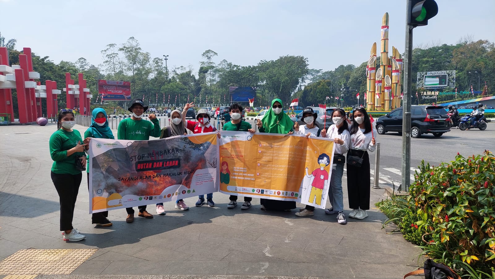 Aksi-aksi itu berupa pemberian masker dewasa dan anak-anak, miniatur bendera Indonesia dan kampanye ”Stop pembakaran hutan dan lahan”.