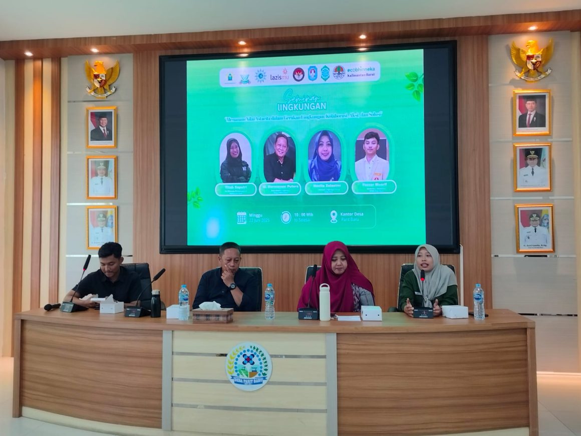 Mykalbar.com — Pimpinan Daerah Pemuda Muhammadiyah (PDPM) Kubu Raya menyelenggarakan seminar lingkungan bertajuk “Menanam Nilai Astacita dalam Gerakan Lingkungan: Kolaborasi Aksi dan Solusi”, yang berlangsung di Aula Kantor Desa Parit Baru pada Minggu (22/6).