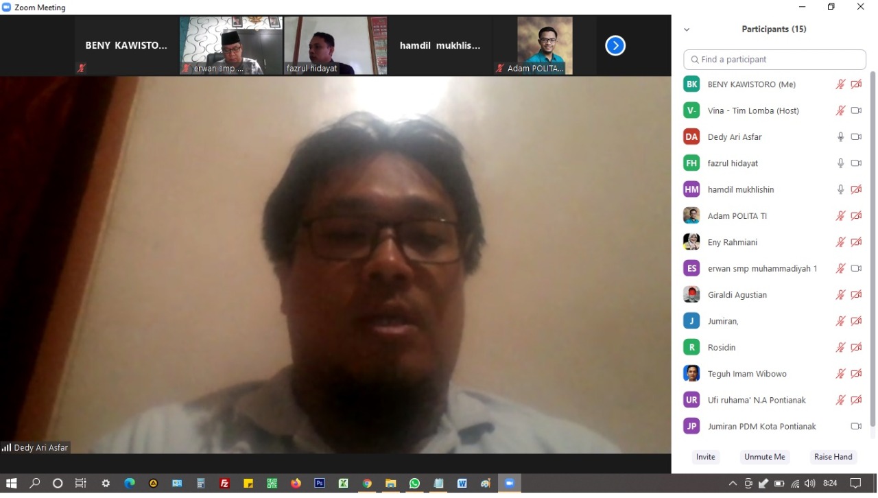 Ketua Panitia Dedy Ari Asfar kembali menyampaikan bahwa amanah PWM Kalbar terkait lomba pastinya harus diselenggarakan se-Kalbar, terutama bisa diakses secara online.