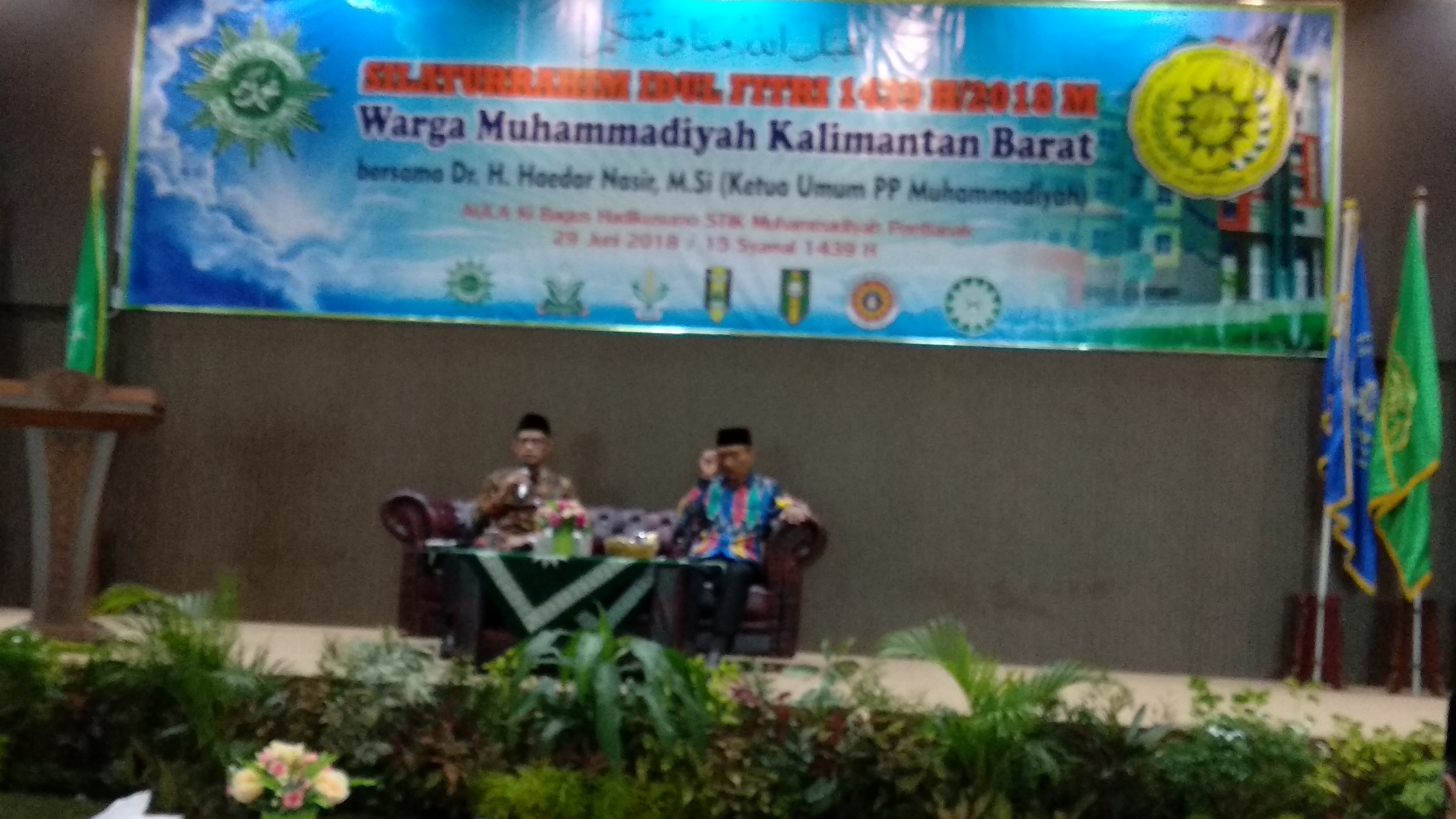 MYKALBAR.COM, PONTIANAK – Ketua Umum PP Muhammadiyah Dr H Haedar Nasir MSi memaparkan makna dan keutamaan silaturahim, saat memberikan tausiah Silaturahim Idul Fitri 1439 H Warga Muhammadiyah Kalbar di Aula Ki Bagus Hadikusumo STIK Muhammadiyah Pontianak, Jumat (29/6/2018).